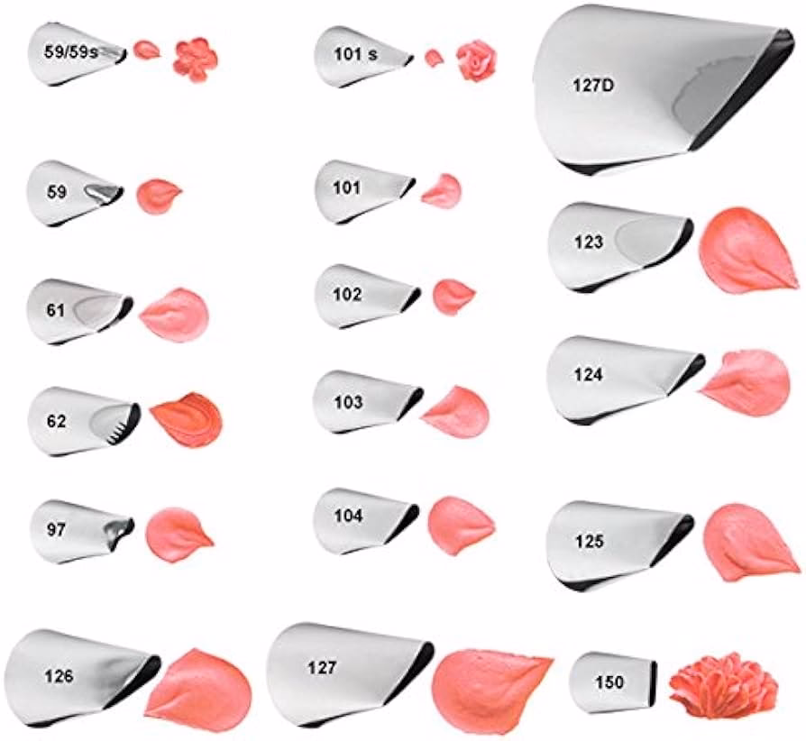 • Boquillas de Pétalo: Diseñadas para crear flores como rosas, volantes y bordes con forma de cinta.