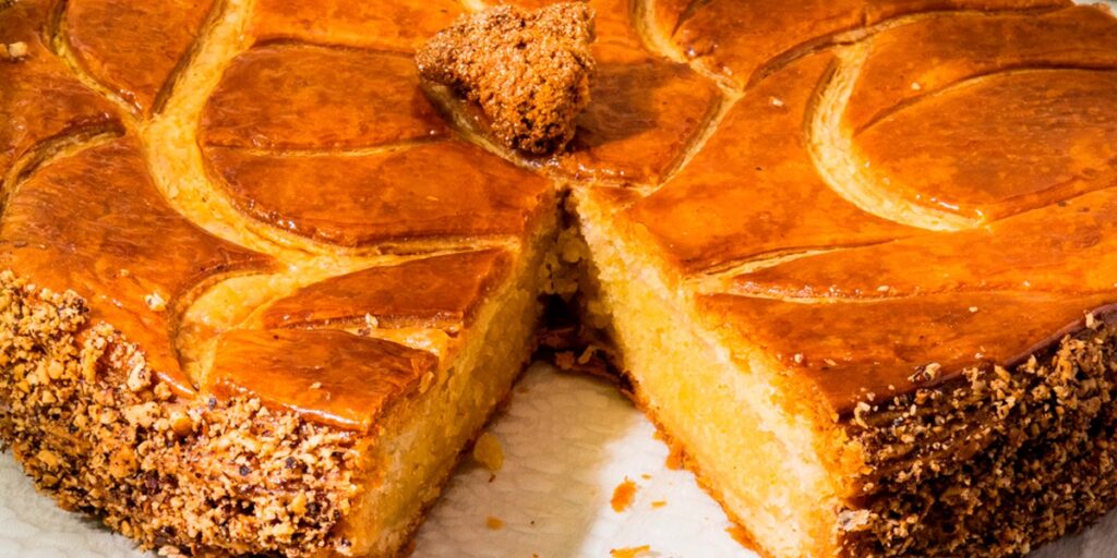 Es una tarta tradicional francesa hecha de hojaldre, a menudo rellena de frangipane, que contiene una pequeña figurita o haba llamada fève. - ¿Cuándo se come la Galette des Rois?