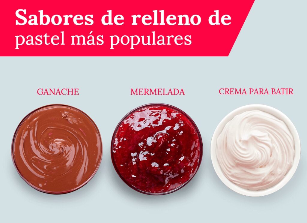 La clave está en la combinación. Un pastel puede tener varias capas con diferentes rellenos para crear una experiencia de sabor y textura compleja y deliciosa. Por ejemplo, una capa de crema pastelera y otra de mermelada de frutos rojos, o un buttercream de vainilla con un centro de ganache de chocolate.